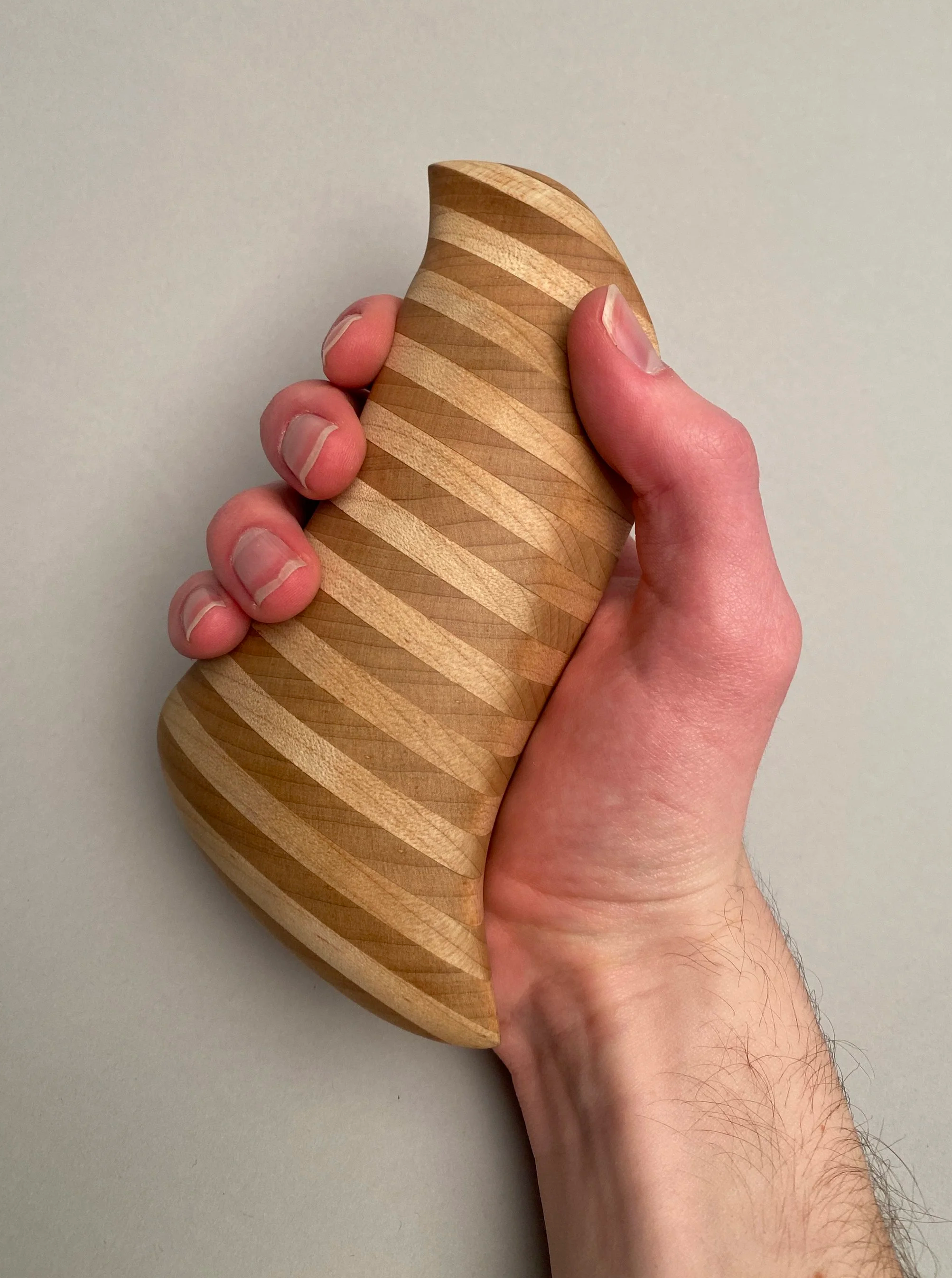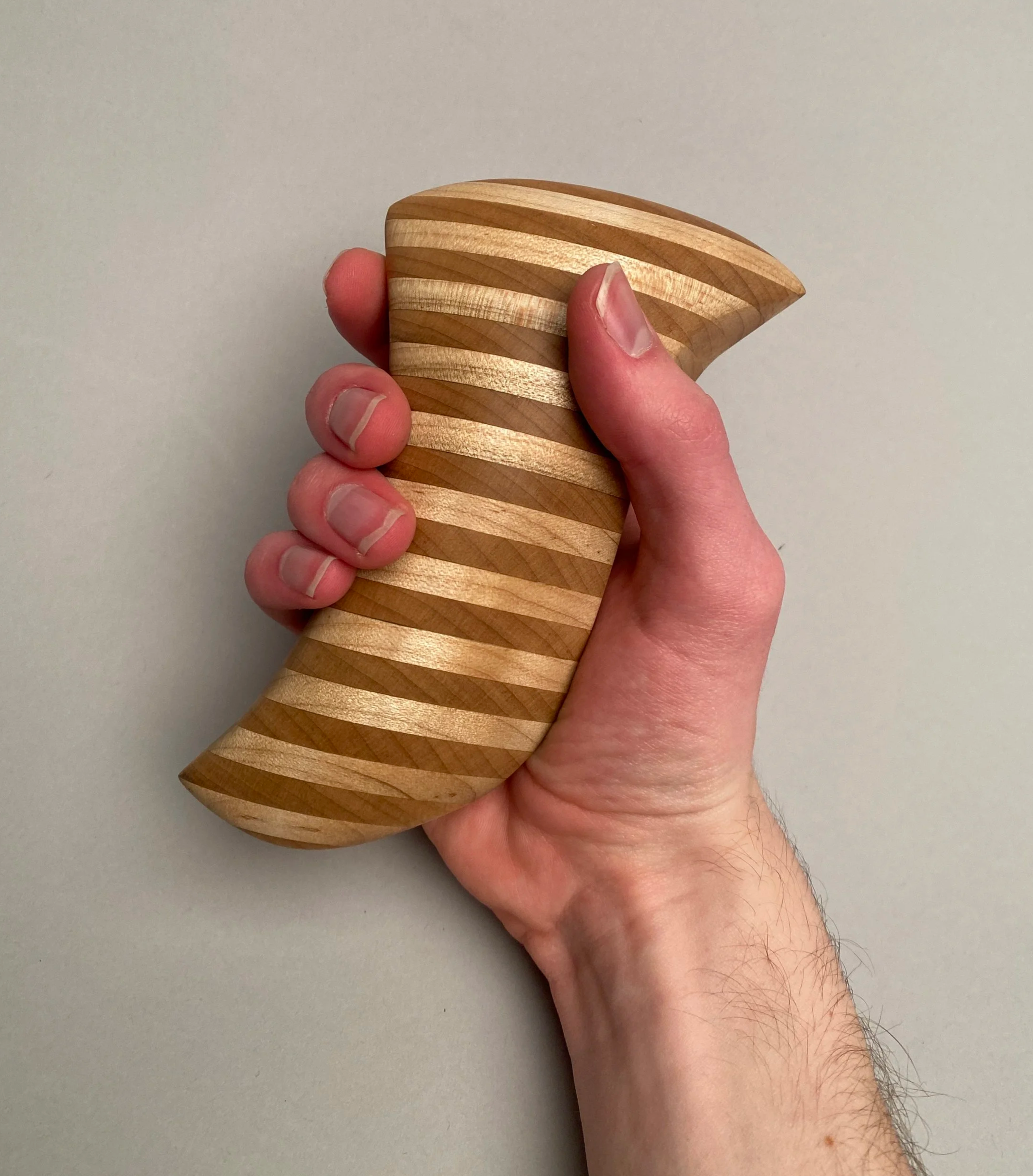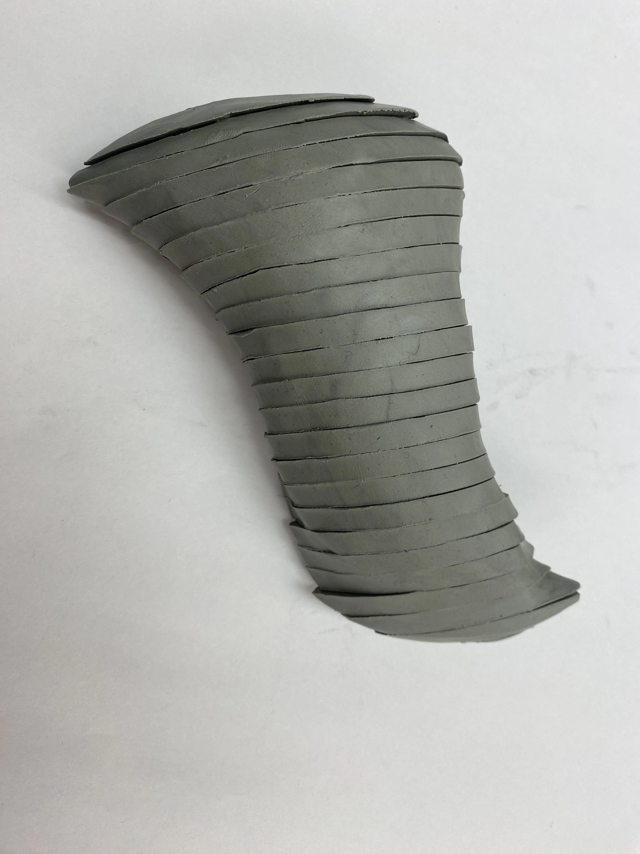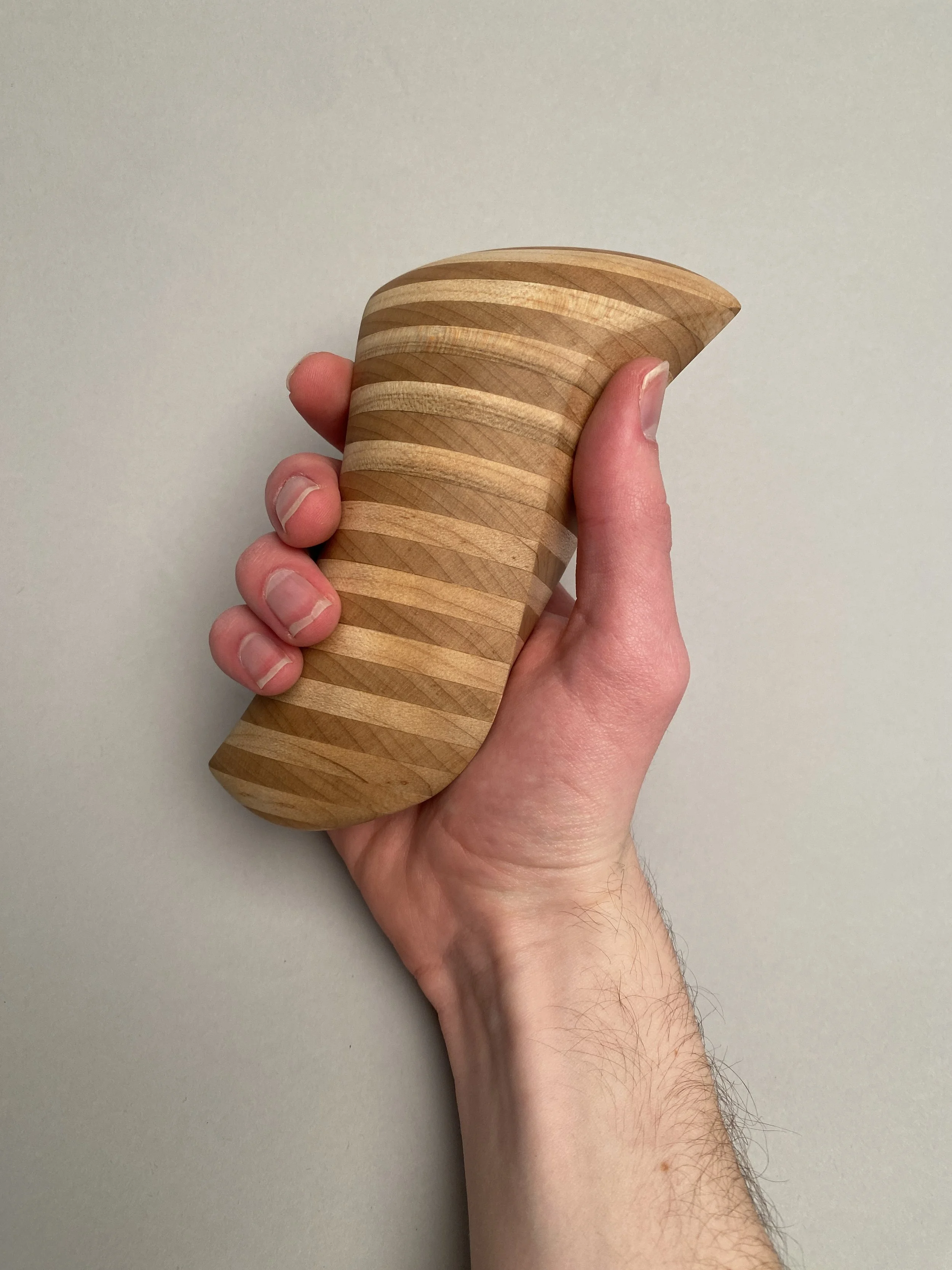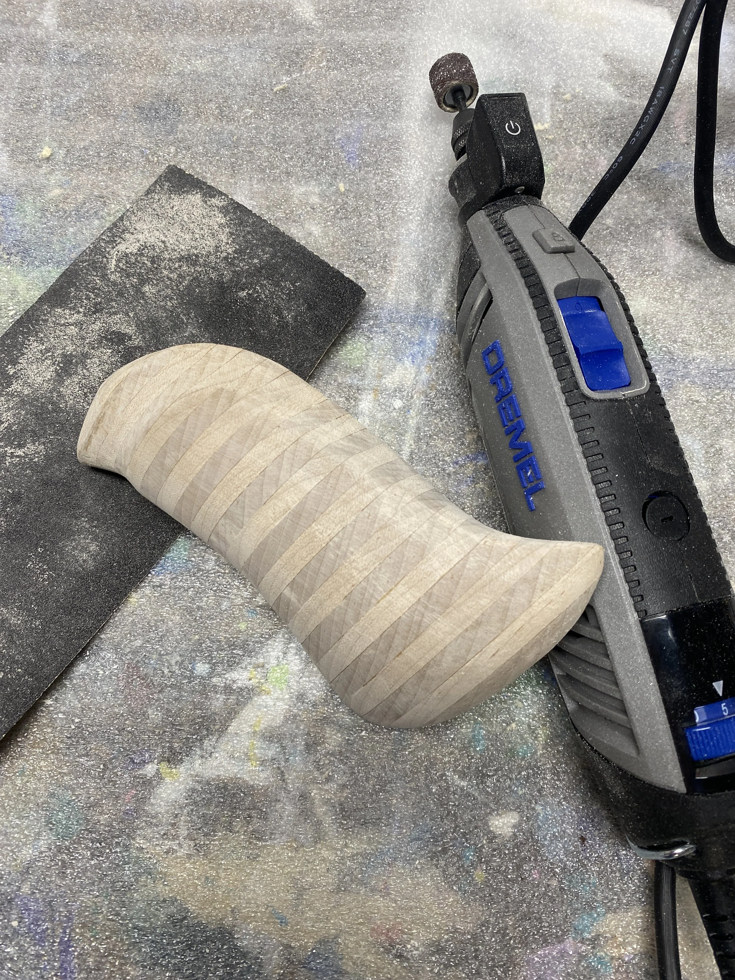I further refined the form using plastalina modeling clay, making sure it was comfortable in a variety of handholds. I sharpened the dynamic curvature of the overall form.