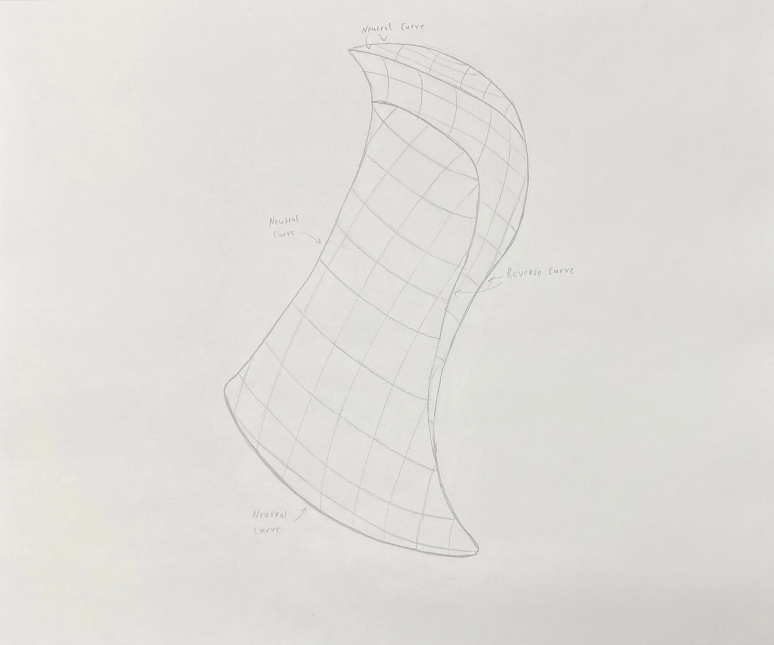 I based my design on an overall reverse curve, connected with alternating convex and concave neutral curves. I kept in mind the need for two ergonomic handholds while sketching.